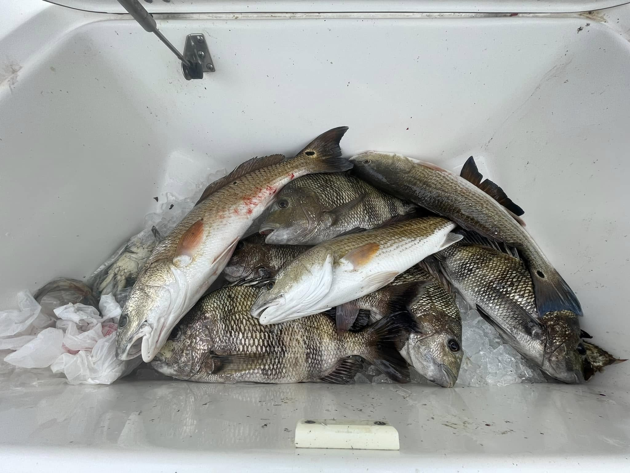Black Drum: Often overlooked by anglers chasing reds and trout, black drum can provide some serious action. These powerful fish can grow to over 40 pounds and put up a stubborn fight. They're bottom feeders, so we'll often target them with natural baits like crab or shrimp. Spring is the best time to catch big spawning drum, but they're available year-round. Don't let their ugly mug fool you – these fish are a blast to catch and great eating when they're smaller.